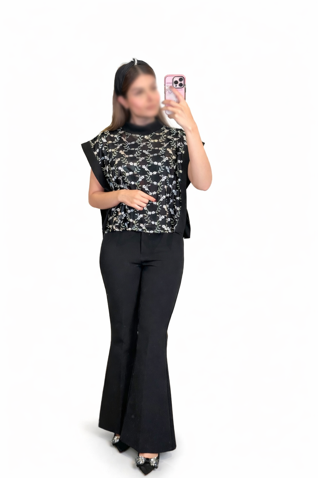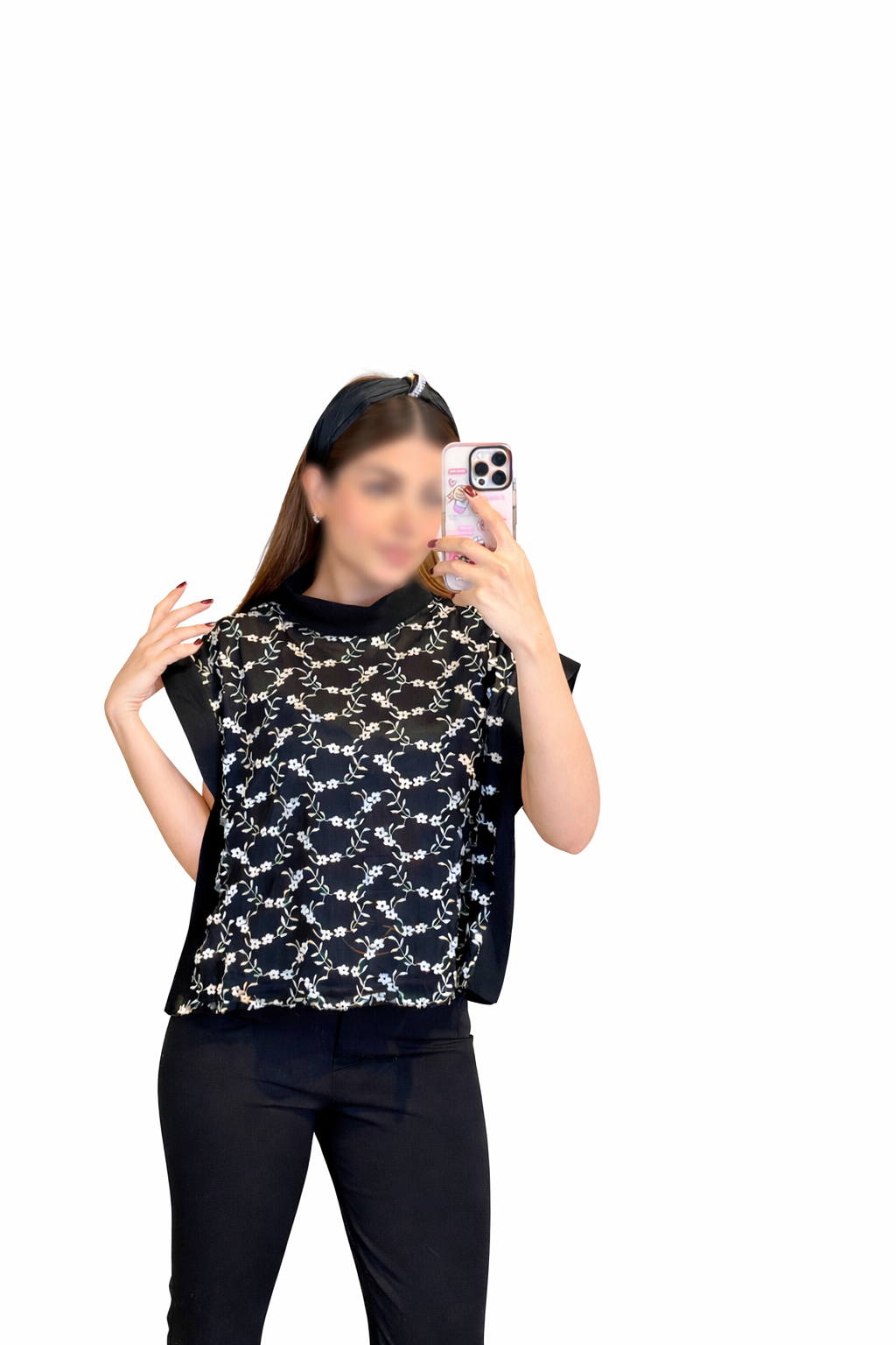 کراپ شومیز خامه دوزی مشکی سفید